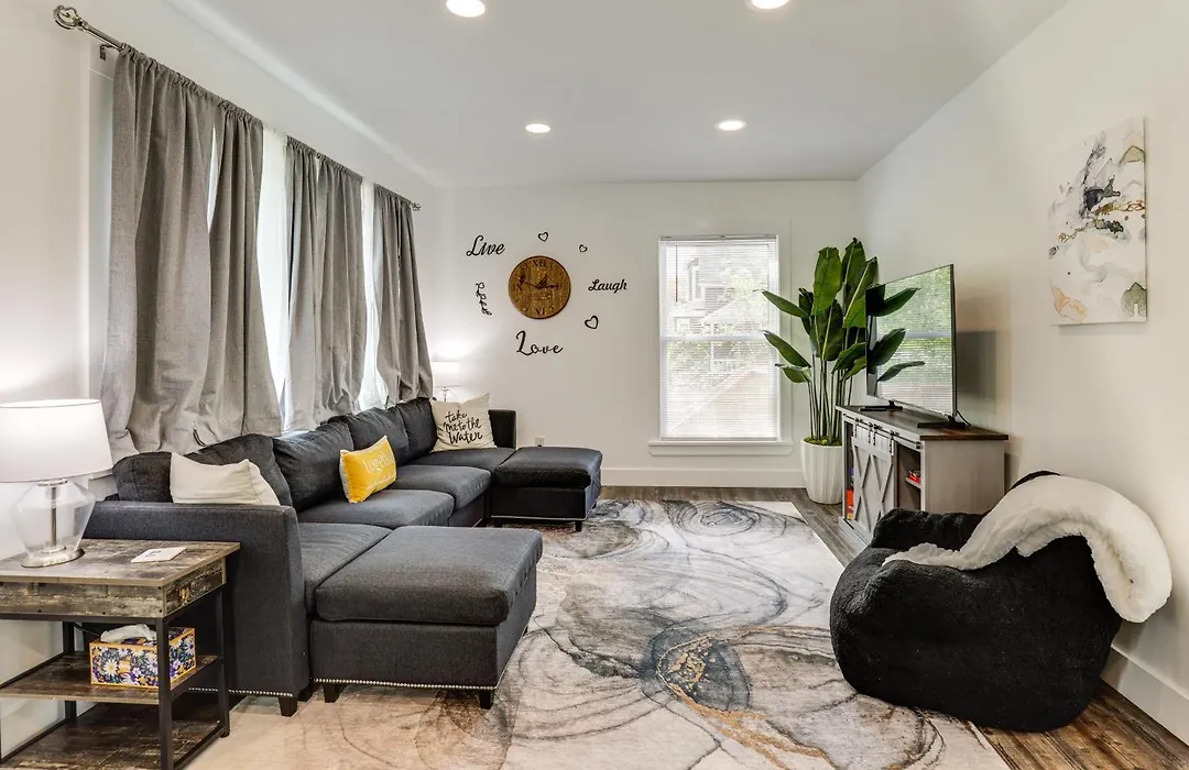 Les salles de bains de cette villa Walk To Downtown And Seneca Lake Updated Retreat! comprennent également une toilette séparée, une douche et une machine à laver. Un sèche-cheveux et des draps de bain font également partie des articles de toilette.